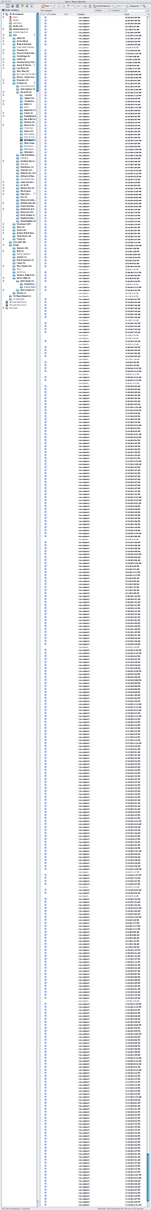 Some time prior to January 14, 2006, I began receiving e-mails with no visible subject, sender, or content, often several per day. The e-mail program I was using showed these as having "no subject." After a while, I started saving them. After August 25, 2006, they stopped. This piece is a composite of screen grabs of the list of the 392 such emails I saved. (Right-click on the image for a view of the whole piece in your browser window; click "next" above for a legible detail from the piece.)